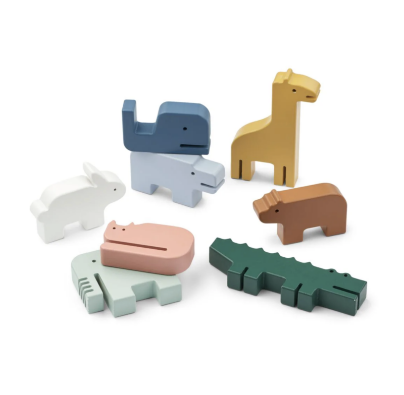 El juego de animales apilables es un juego de equilibrio perfecto para fomentar la motricidad y el aprendizaje temprano. Fabricados en madera de haya 100% natural.