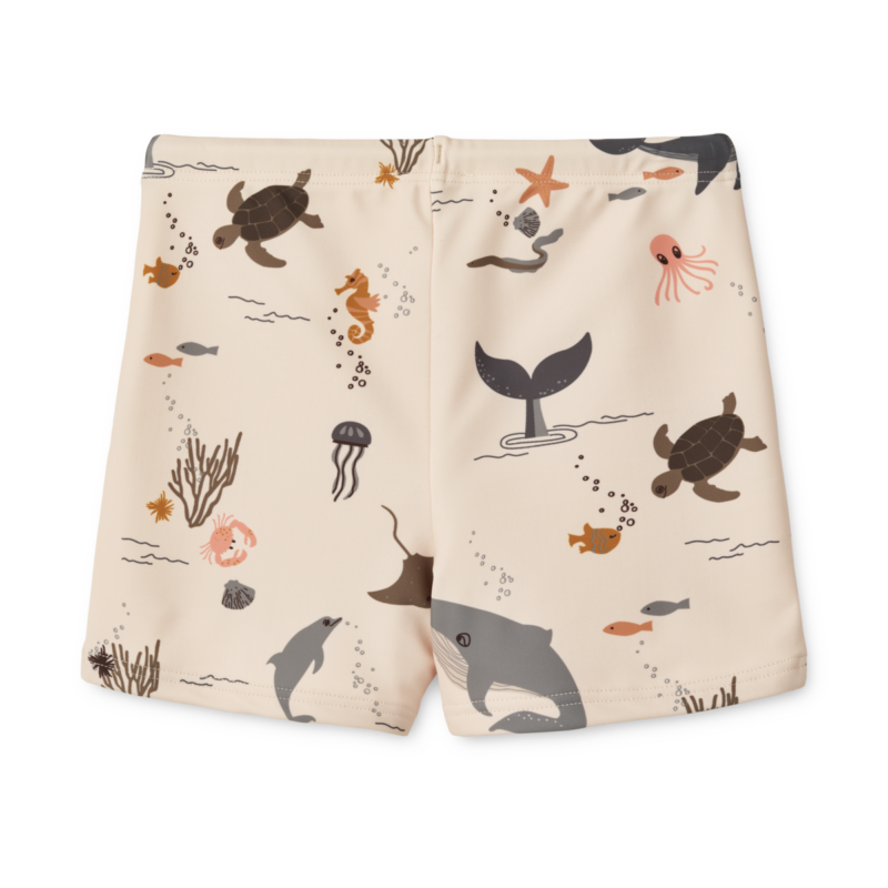 Bañador estampado que ofrece comodidad y protección con factor UV de 40+, con tejido elástico y cintura ajustable. El bañador esta totalmente forrado y es de secado rápido.