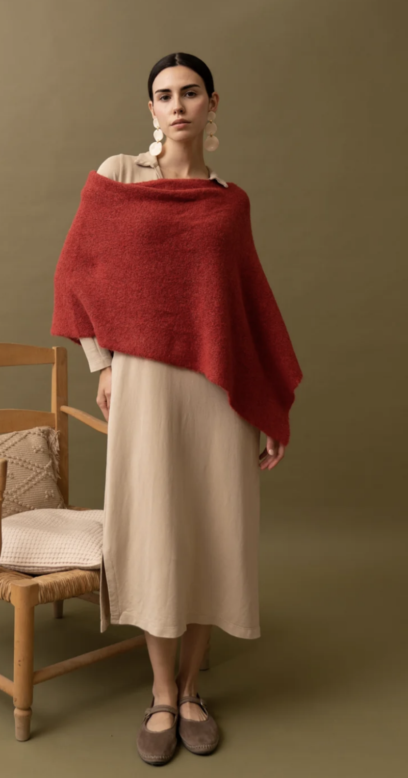 Capa cálida de pelo suave rectangular con agujero tipo barca.