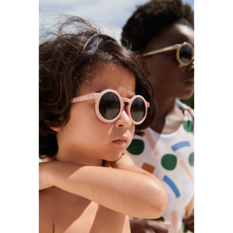 Gafas de sol con forma redonda para niños que protejen contra el sol al mismo tiempo que los mantiene cómodos y frescos. Tienen un vidrio protegido con UV400, monturas hechas de policarbonato reciclado duradero y bisagras con resorte para evitar que se rompan fácilmente.