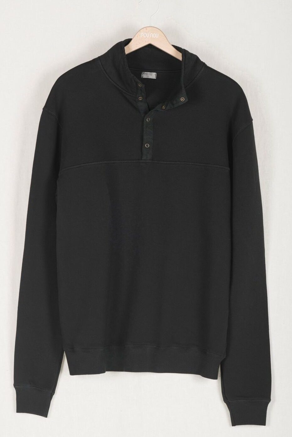 Sudadera confeccionada en tejido 100% algodón orgánico, con manga larga, tapeta con corchetes, corte recto y canalé en puños y bajos.